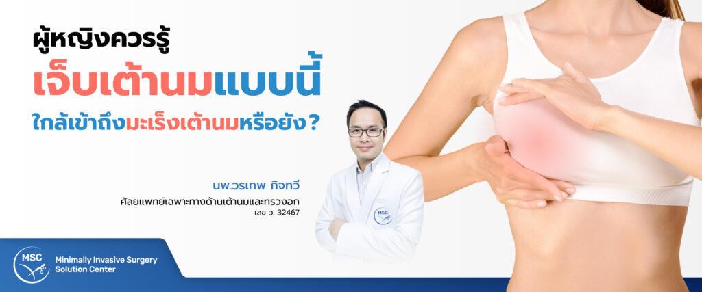อาการเจ็บเต้านม อาจทำให้หลายคนตกใจและสงสัยว่า “นี่คือสัญญาณของมะเร็งเต้านมหรือเปล่า ?” ความจริงคือ อาการเจ็บเต้านมไม่ได้หมายความว่าคุณเป็นมะเร็งเสมอไป สาเหตุที่พบบ่อยอาจมาจากประจำเดือน ฮอร์โมน หรือการบาดเจ็บอื่น ๆ แต่หากมีอาการเจ็บปวดที่ผิดปกติและเรื้อรัง รวมถึงสัญญาณอื่น ๆ ที่น่าสงสัย ควรปรึกษาแพทย์เพื่อตรวจวินิจฉัยอย่างละเอียด เพราะอาจเป็นสัญญาณเริ่มต้นของโรคที่ร้ายแรงอย่าง “มะเร็งเต้านม” ซึ่งเป็นหนึ่งในโรคที่คร่าชีวิตหญิงไทยมากที่สุดในแต่ละปีได้